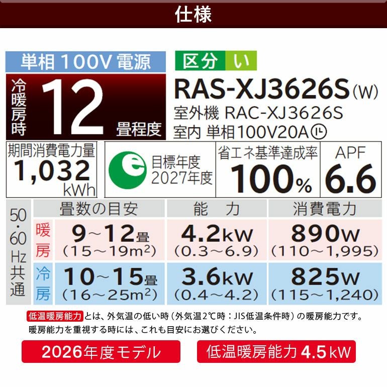 他の画像を見る [LAB制御][凍結洗浄 除菌ヒートプラス][ファンお掃除ロボ][Premiumプラズマ空清][凍結脱臭クリーナー]搭載プレミアムモデル。主に12畳用 RAS-XJ3626S-W 日立 ルームエアコン 白くまくん XJシリーズ 主に12畳用 日立 白くまくん 代引不可 単相100V 日本製 2026年モデル ¥ 163,510 税込 詳細を見る お気に入りに登録する