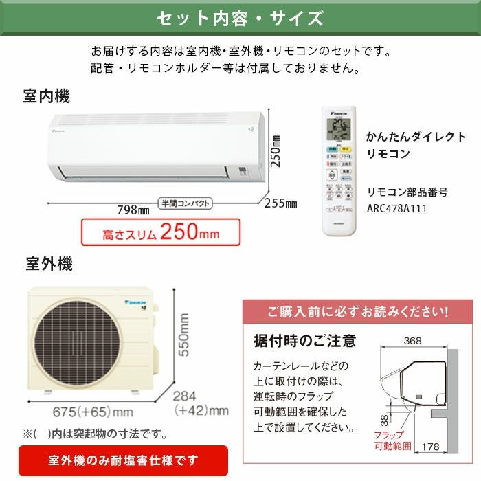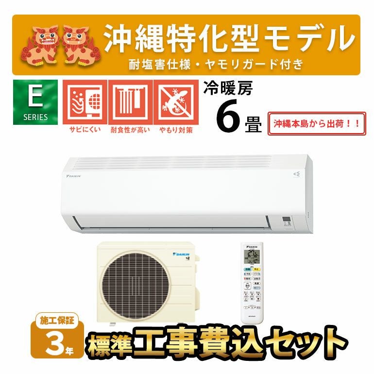 他の画像を見る 沖縄県限定配送●標準工事費込み●沖縄の環境に最適化された耐塩害仕様エアコンです。主に6畳用 【沖縄本島限定】【標準工事費込み】S225ATES-WE ダイキン ルームエアコン Eシリーズ 耐塩害仕様 主に6畳用 ダイキン Eシリーズ 標準工事費込み 代引不可 単相100V 2025年モデル ¥ 89,800 税込 詳細を見る お気に入りに登録する