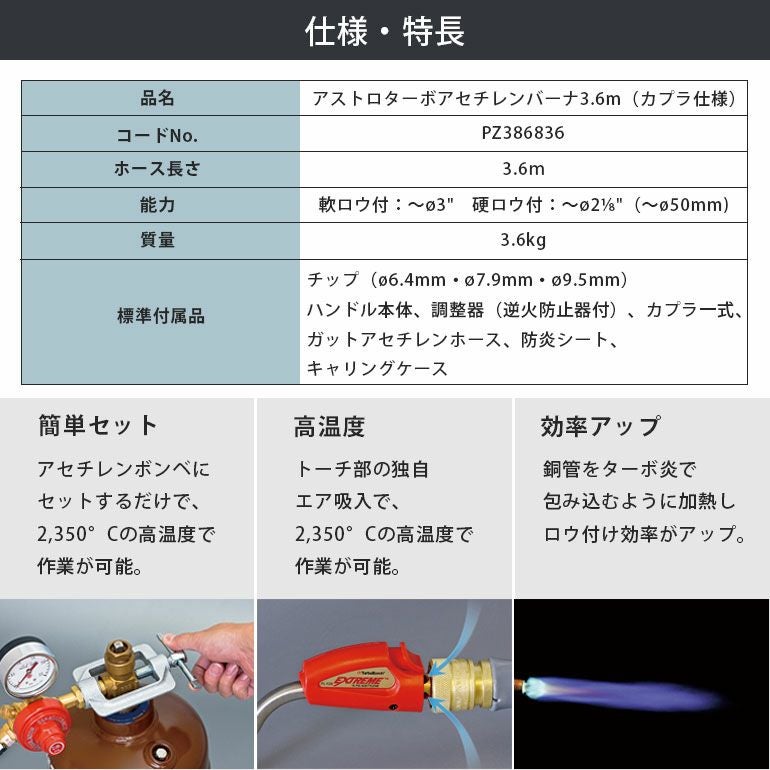 他の画像を見る 酸素ボンベ不要。逆火防止器付き。電子着火。カプラ仕様 PZ386836 アサダ アストロターボアセチレンバーナ 3.6m (カプラ仕様) 代引不可 ¥ 73,980 税込 在庫切れ 詳細を見る お気に入りに登録する