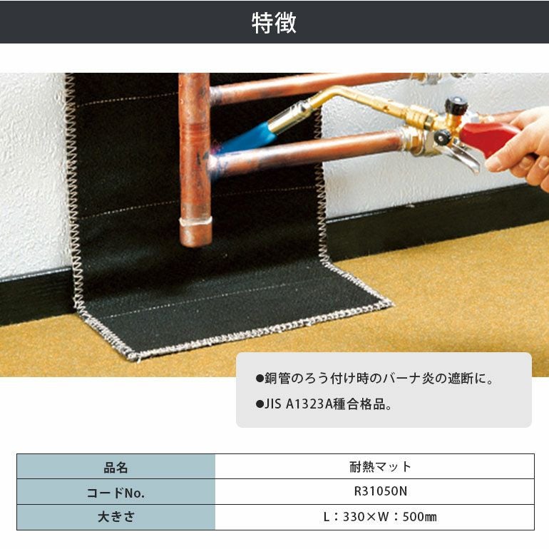 他の画像を見る 300×500mmサイズの耐熱マット。溶接や配管作業時に周囲を熱から守る保護シート。 R31050N アサダ 耐熱マット 代引不可 ¥ 9,595 税込 カートに入れる お気に入りに登録する