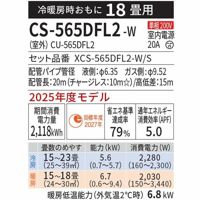 他の画像を見る お手入れの負担を減らす内部の清潔性能が充実したスタンダードモデル CS-565DFL2-W パナソニック ルームエアコン Fシリーズ 主に18畳用 2025年モデル パナソニック エオリア 代引不可 単相200V 2025年モデル ¥ 133,610 税込 在庫切れ 詳細を見る お気に入りに登録する