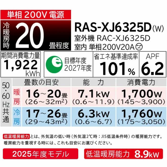 他の画像を見る [LAB制御][凍結洗浄 除菌ヒートプラス][ファンお掃除ロボ][Premiumプラズマ空清][凍結脱臭クリーナー]搭載プレミアムモデル。主に20畳用 RAS-XJ6326D-W 日立 ルームエアコン 白くまくん XJシリーズ 主に20畳用 日立 白くまくん 代引不可 単相200V 日本製 2026年モデル ¥ 220,976 税込 詳細を見る お気に入りに登録する