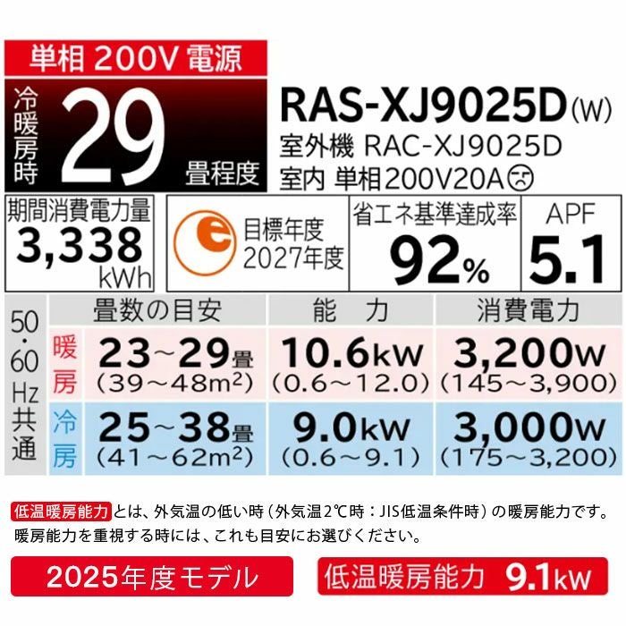 他の画像を見る [LAB制御][凍結洗浄 除菌ヒートプラス][ファンお掃除ロボ][Premiumプラズマ空清][凍結脱臭クリーナー]搭載プレミアムモデル。主に29畳用 RAS-XJ9026D-W 日立 ルームエアコン 白くまくん XJシリーズ 主に29畳用 日立 白くまくん 代引不可 単相200V 日本製 2026年モデル ¥ 258,000 税込 詳細を見る お気に入りに登録する