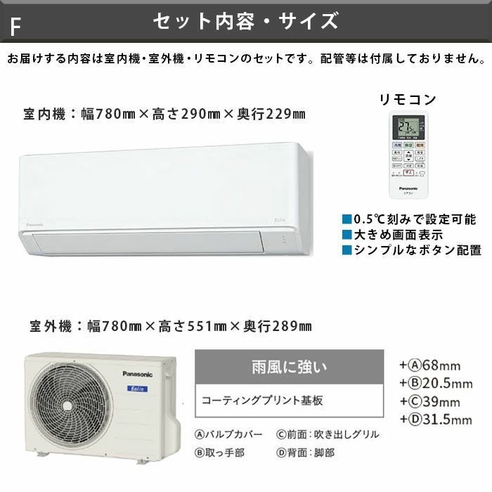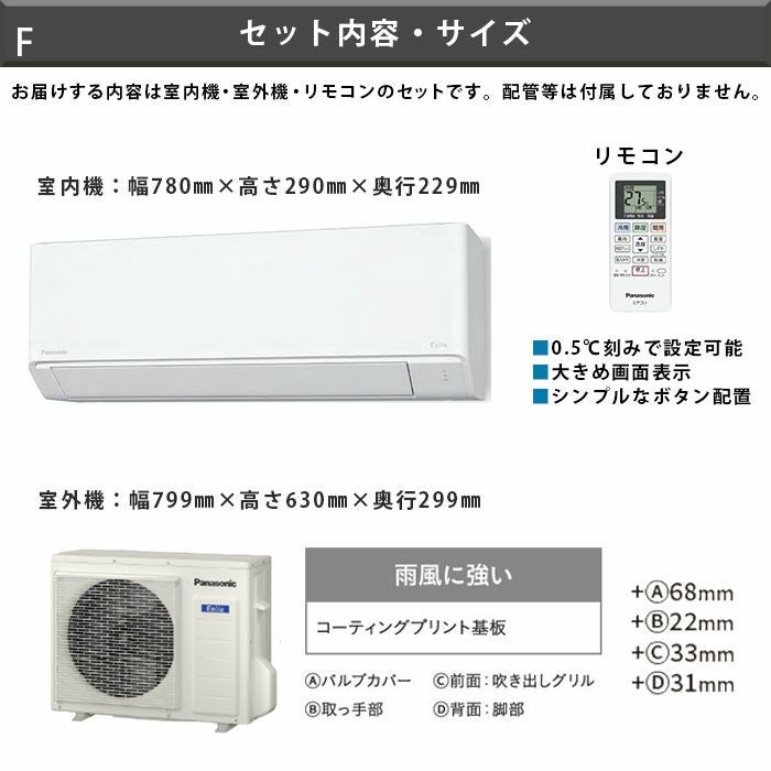 他の画像を見る 標準工事費込み。内部クリーン運転・熱交換器コーティング・冷風が直接体にあたらない気流の性能が充実したスタンダードモデル 【標準工事費込み】CS-405DFL2-W パナソニック ルームエアコン Fシリーズ 主に14畳用 2025年モデル パナソニック エオリア 標準工事費込み 代引不可 単相200V 2025年モデル ¥ 116,290 税込 在庫切れ 詳細を見る お気に入りに登録する