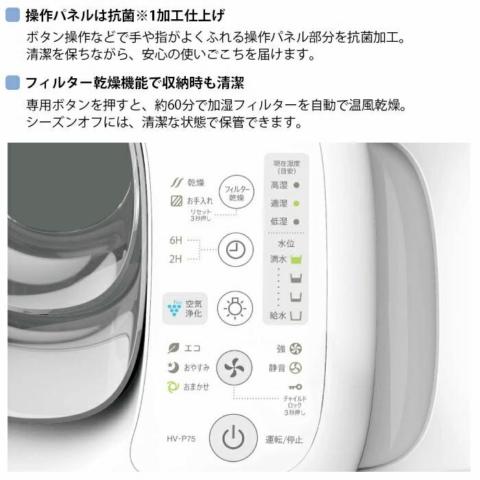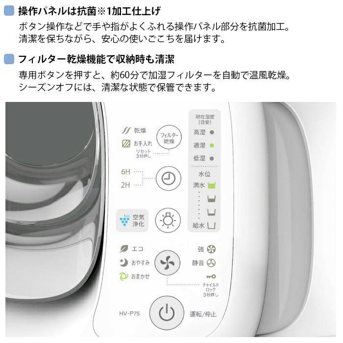 他の画像を見る 給水しやすくお手入れ簡単な加湿器。加湿量750ml/h。 HV-S75-W シャープ プラズマクラスターハイブリッド式加湿器 ¥ 23,050 税込 在庫切れ 詳細を見る お気に入りに登録する