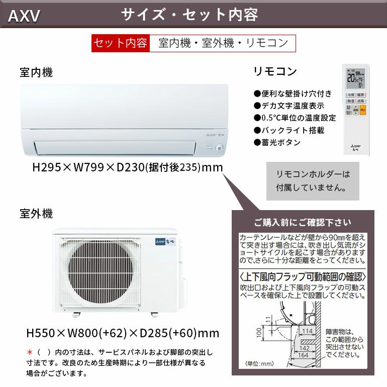 他の画像を見る 標準工事費込。「消し忘れオートOFF」で、うっかり消し忘れても自動で電源を落として節約にも貢献。主に10畳用。 【標準工事費込み】MSZ-AXV2825-W 三菱電機 AXVシリーズ エアコン 主に10畳用 三菱 霧ヶ峰 標準工事費込み 代引不可 単相100V 日本製 2025年モデル ¥ 105,430 税込 詳細を見る お気に入りに登録する