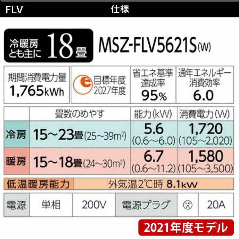 他の画像を見る 標準工事費込。花粉・ウイルス・ニオイ対策に優れた空清フィルター搭載。主に18畳用。 【標準工事費込み】MSZ-FLV5621S-W 三菱電機 FLシリーズ エアコン 主に18畳用 三菱 霧ヶ峰 標準工事費込み 代引不可 単相200V 日本製 2021年モデル ¥ 214,160 税込 詳細を見る お気に入りに登録する