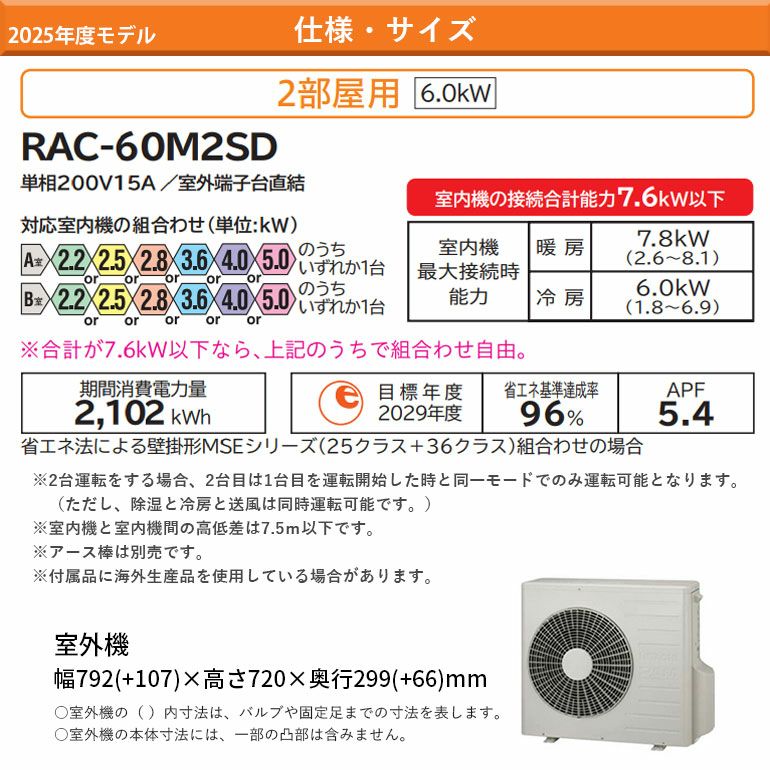 他の画像を見る 室外機のみ。2台以上の室内機と室外機を組み合わせるマルチタイプ。2部屋用。 RAC-60M2SD 日立 システムマルチ室外機 2部屋用6.0KW 室外機のみ 日立 白くまくん 代引不可 単相200V 2025年モデル 2部屋用 ¥ 141,085 税込 詳細を見る お気に入りに登録する