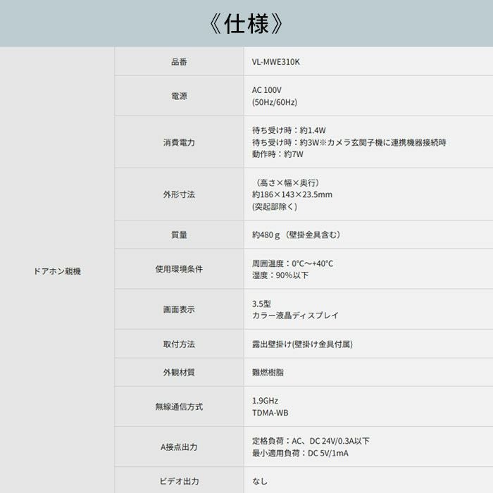他の画像を見る ワイヤレスモニター子機で来客応対や録画の確認が可能です。 VL-SWE210KLA パナソニック テレビドアホン 電源コード式・電源プラグ式 代引不可 ¥ 22,480 税込 詳細を見る お気に入りに登録する