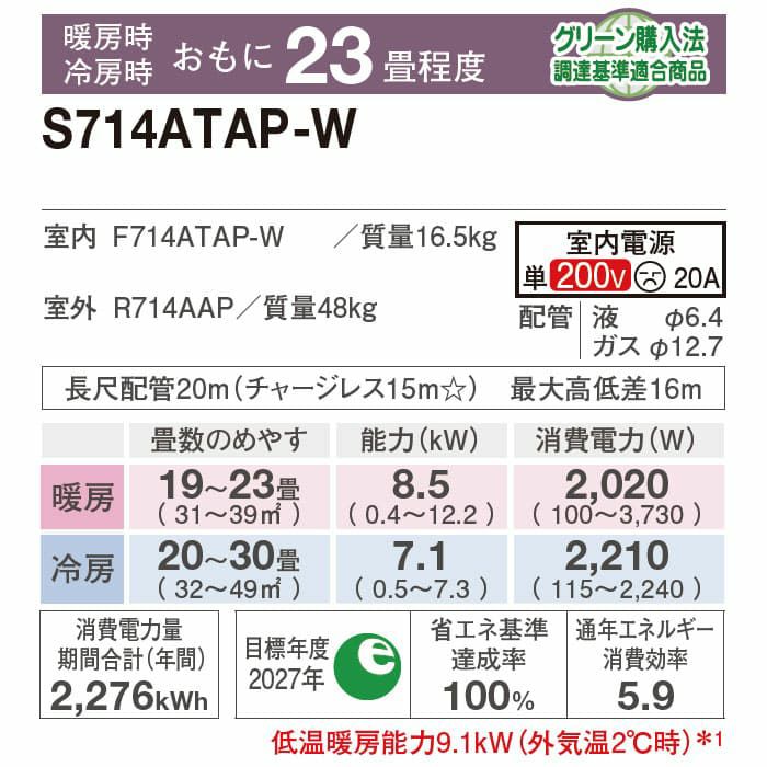 他の画像を見る ダイキン工業 S714ATRP-W●エリア限定●標準工事費用込みエアコン。工事保証3年付。 【標準工事費込み】S714ATRP-W ダイキン ルームエアコン うるさら RXシリーズ 主に23畳用 標準工事費込み 代引不可 単相200V 2024年モデル ¥ 294,520 税込 在庫切れ 詳細を見る お気に入りに登録する