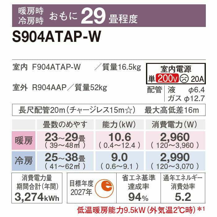 他の画像を見る ダイキン工業 S904ATAP-W●エリア限定●標準工事費用込みエアコン。工事保証3年付。 【標準工事費込み】S904ATAP-W ダイキン ルームエアコン AXシリーズ 主に29畳用 ダイキン AXシリーズ 標準工事費込み 代引不可 単相200V 2024年モデル ¥ 332,310 税込 在庫切れ 詳細を見る お気に入りに登録する