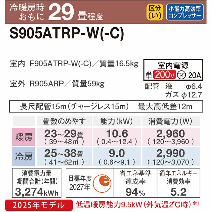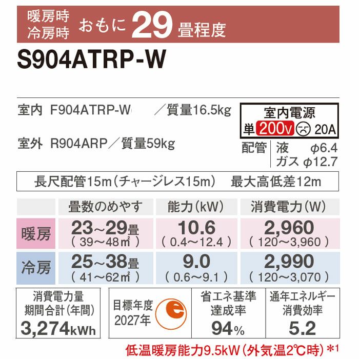 他の画像を見る ダイキン工業 S905ATRP-W●エリア限定●標準工事費用込みエアコン●工事保証3年付●うるさら 【標準工事費込み】S905ATRP-W ダイキン ルームエアコン うるさら RXシリーズ 主に29畳用 標準工事費込み 代引不可 単相200V 2025年モデル ¥ 328,160 税込 在庫切れ 詳細を見る お気に入りに登録する