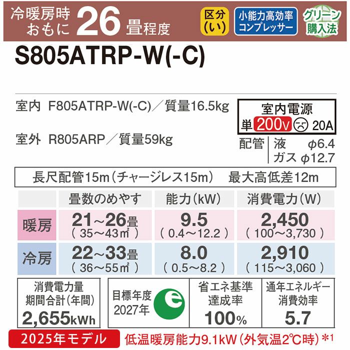 他の画像を見る ダイキン工業 S805ATRP-W●エリア限定●標準工事費用込みエアコン●工事保証3年付●うるさら 【標準工事費込み】S805ATRP-W ダイキン ルームエアコン うるさら RXシリーズ 主に26畳用 標準工事費込み 代引不可 単相200V 2025年モデル ¥ 298,430 税込 在庫切れ 詳細を見る お気に入りに登録する