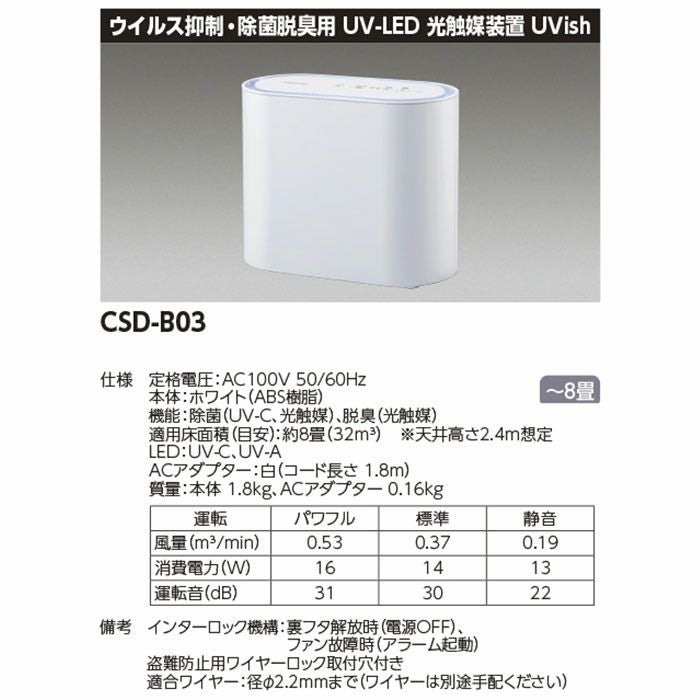 他の画像を見る CSDB03 東芝 8畳程度 コンパクト CSD-B03 東芝ライテック ウイルス抑制・除菌脱臭用UV-LED+光触媒装置 Uvish ~8畳用 ¥ 49,570 税込 カートに入れる お気に入りに登録する