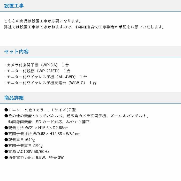 他の画像を見る よりシンプルなデザインとなった「ワイヤレス子機」付きのテレビドアホン。 WS-14A アイホン テレビドアホン 電源直結式(要配線工事) ¥ 25,100 税込 詳細を見る お気に入りに登録する