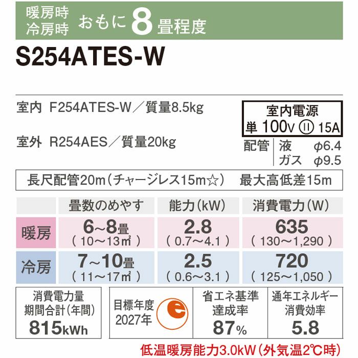 他の画像を見る ダイキン工業 S254ATES-W●エリア限定●標準工事費用込みエアコン。工事保証3年付。 【標準工事費込み】S254ATES-W ダイキン ルームエアコン Eシリーズ 主に8畳用 ダイキン Eシリーズ 標準工事費込み 代引不可 単相100V 2024年モデル ¥ 84,780 税込 詳細を見る お気に入りに登録する