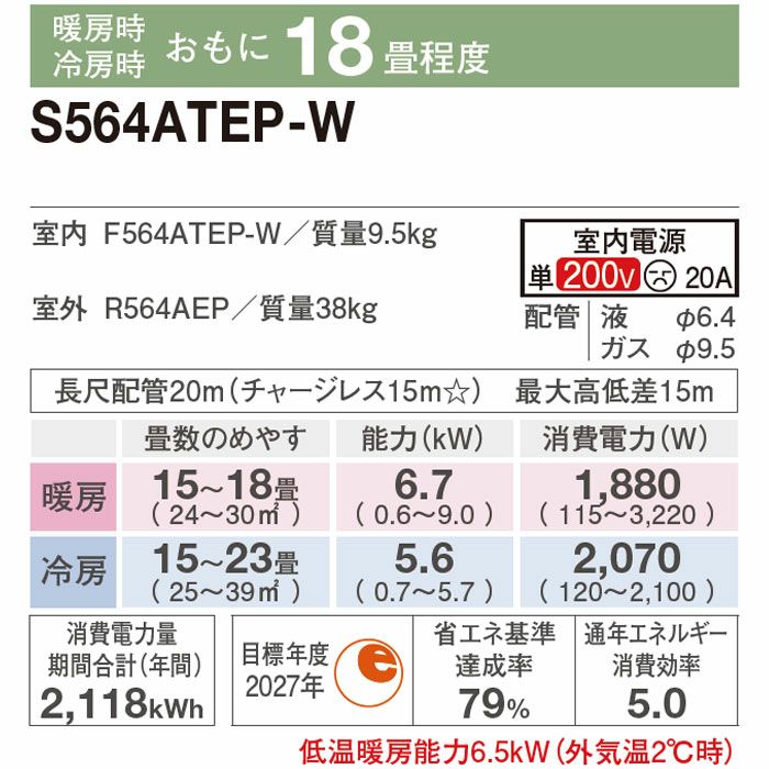 他の画像を見る ダイキン工業 S564ATEP-W●エリア限定●標準工事費用込みエアコン。工事保証3年付。 【標準工事費込み】S564ATEP-W ダイキン ルームエアコン Eシリーズ 主に18畳用 ダイキン Eシリーズ 標準工事費込み 代引不可 単相200V 2024年モデル ¥ 151,150 税込 詳細を見る お気に入りに登録する