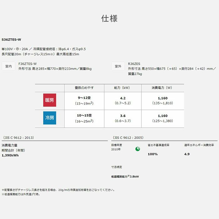 他の画像を見る S36ZTES-W ダイキンW●エリア限定●標準工事費用込みエアコン。工事保証3年付。 【長期保管商品】【標準工事費込み】S36ZTES-W ダイキン ルームエアコン Eシリーズ 主に12畳用 ダイキン Eシリーズ 標準工事費込み 代引不可 単相100V 2022年モデル ¥ 96,100 税込 在庫切れ 詳細を見る お気に入りに登録する