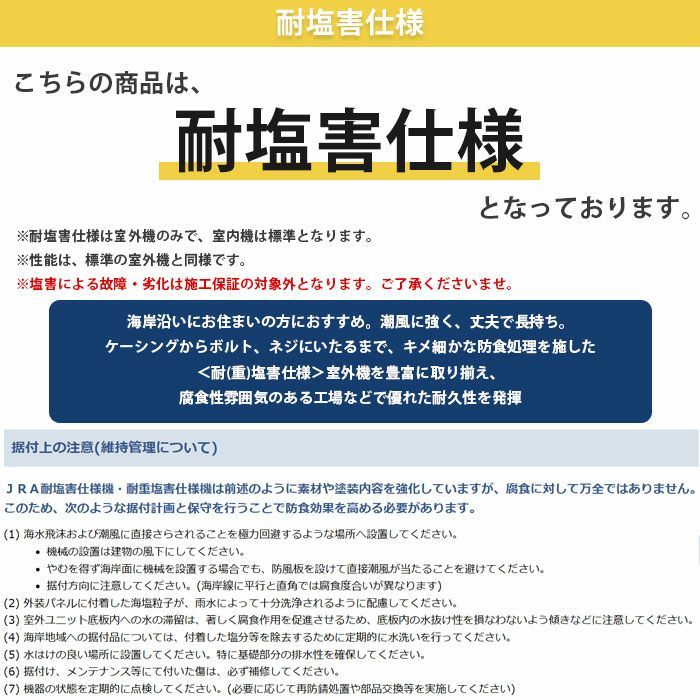他の画像を見る 標準工事費込み。耐塩害仕様。潮風にあたる場所への設置、海岸沿いのお住まいの方におすすめ。主に14畳用。 【標準工事費込み】S404ATEP-WE 耐塩害仕様 ダイキン工業 ルームエアコン Eシリーズ 主に14畳用 ダイキン Eシリーズ 標準工事費込み 代引不可 単相200V 2024年モデル ¥ 116,100 税込 詳細を見る お気に入りに登録する