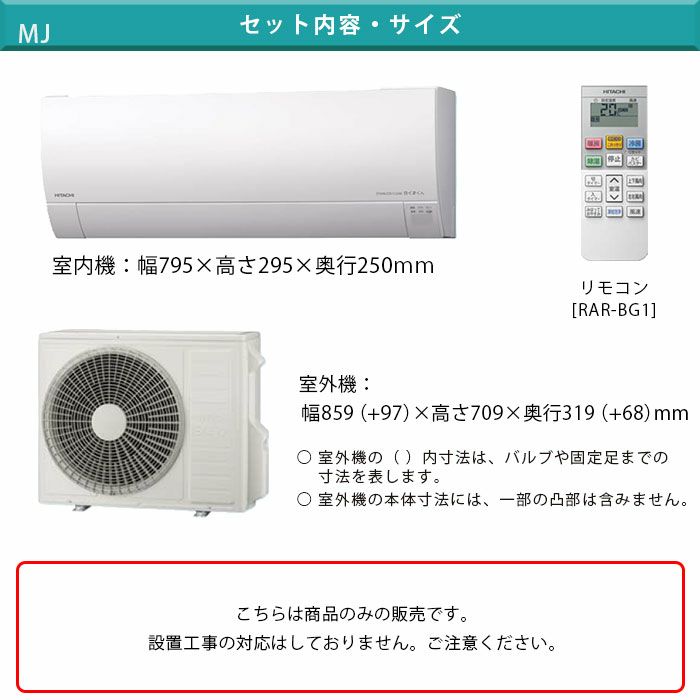 他の画像を見る 標準工事費込。室内機・室外機[凍結洗浄]に加え、[カビバスター]を搭載 【標準工事費込み】RAS-MJ5625D-W MJシリーズ 白くまくん 日立 エアコン 2025年モデル 主に18畳用 日立 白くまくん 標準工事費込み 代引不可 単相200V フィルター自動洗浄 2025年モデル ¥ 142,310 税込 詳細を見る お気に入りに登録する