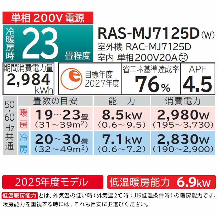 他の画像を見る 本体奥行き25㎝の薄型で寝室や子ども部屋などにもすっきり設置できる薄型モデル RAS-MJ7125D-W 日立 MJシリーズ 白くまくん ルームエアコン 2025年モデル 主に23畳用 日立 白くまくん 代引不可 単相200V フィルター自動洗浄 2025年モデル ¥ 135,040 税込 詳細を見る お気に入りに登録する